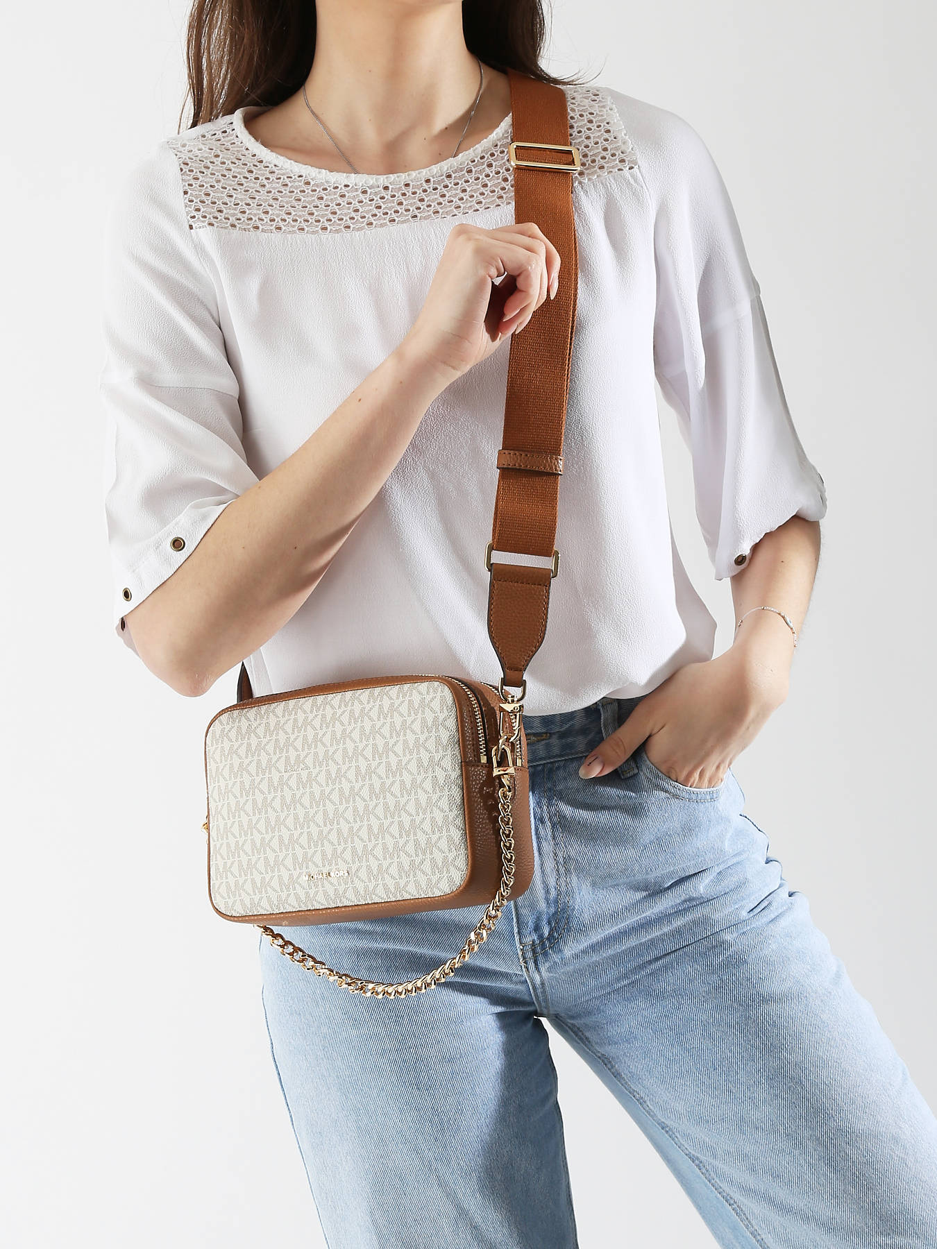 Le sac bandoulière MICHAEL KORS est l’accessoire idéal pour allier élégance et praticité. Fabriqué en toile enduite garnie de cuir, il combine robustesse et raffinement. Son extérieur dispose d’une poche au dos pour un accès rapide à vos objets essentiels, tandis que sa fermeture zippée garantit la sécurité de vos affaires. À l’intérieur, un compartiment principal et une poche simple offrent une organisation optimale. Sa bandoulière réglable et amovible permet un porté confortable en bandoulière, adapté à vos besoins. Un sac polyvalent et chic, parfait pour compléter toutes vos tenues.