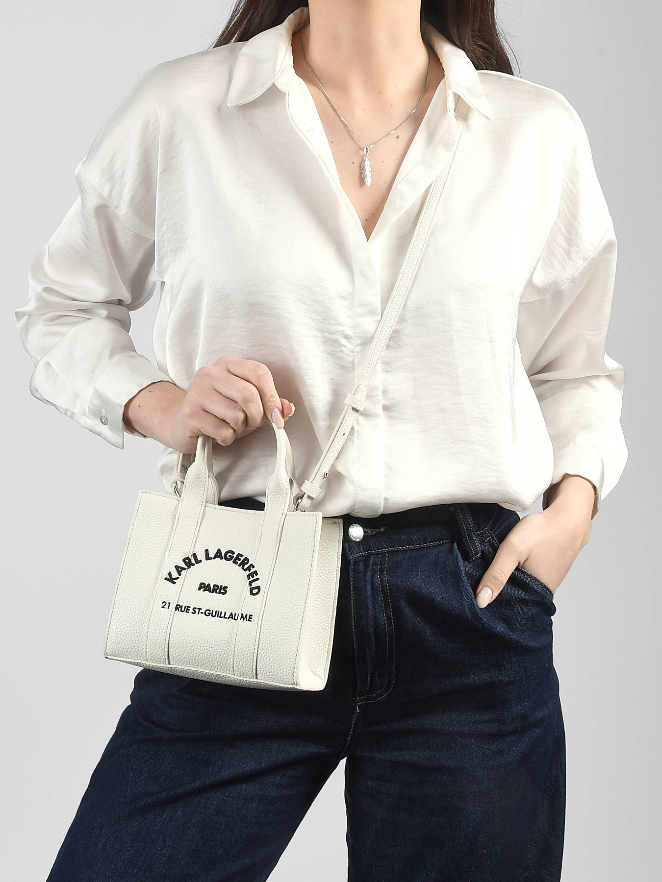 The RSG Karl Lagerfeld crossbody bag, crafted from high-quality cowhide leather, combines elegance and practicality for everyday use. Its smooth, refined exterior closes with a discreet magnetic clasp, ensuring easy and secure access to the main compartment. The 8.5 cm handle allows for elegant hand carry, while the adjustable and removable strap offers great versatility, allowing it to be worn crossbody for added comfort and freedom of movement. Inside, a spacious compartment is complemented by a simple pocket, perfect for organizing your essentials. This compact yet functional bag embodies Karl Lagerfeld’s contemporary and sophisticated style, ideal for complementing your daily outfits with a touch of subtle luxury. A versatile accessory that blends refined design and comfort, suitable for all occasions.