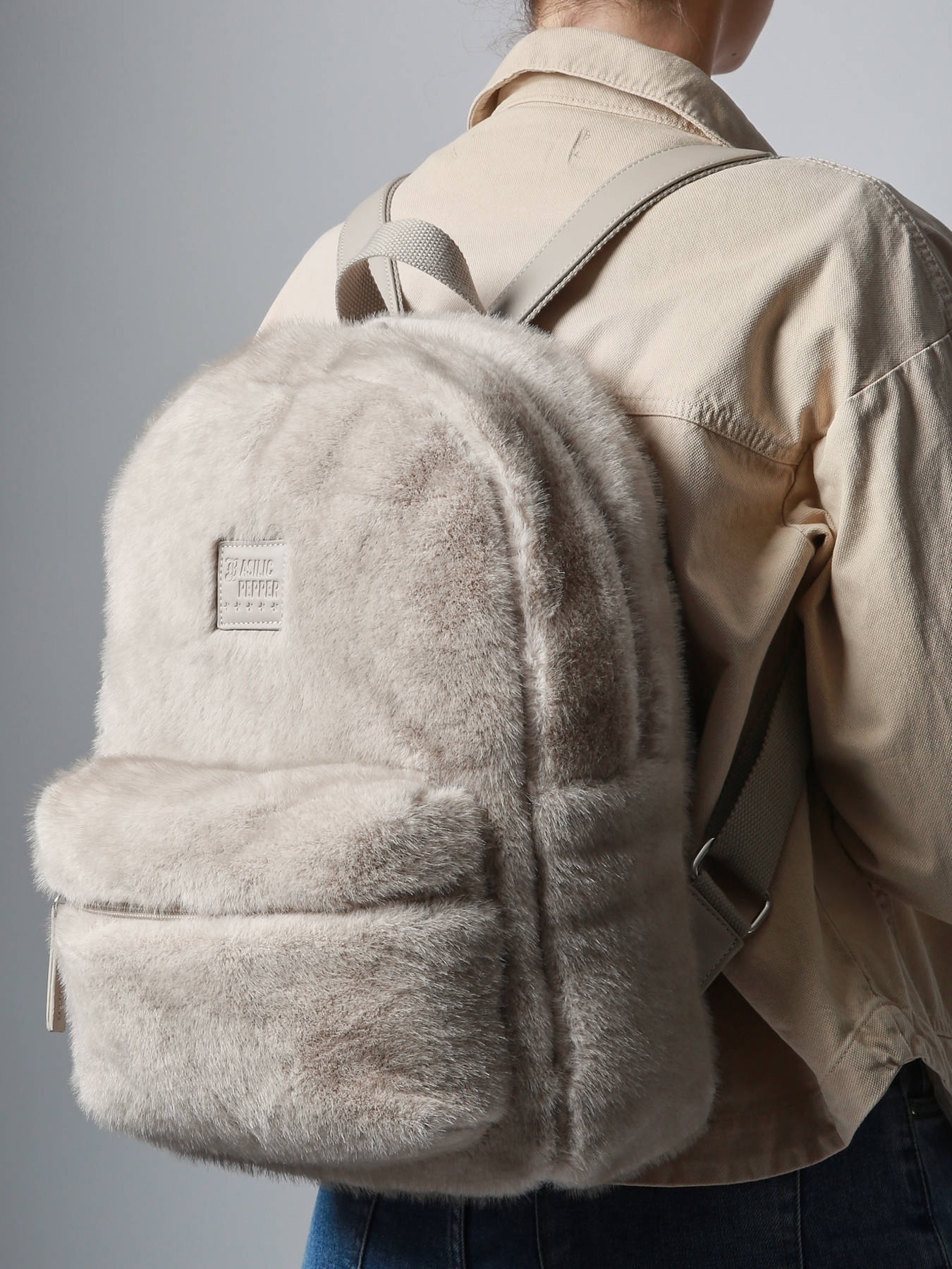 40 cm - 21 litres - 1.45 kg ~ Le sac à dos BASILIC PEPPER en fausse fourrure allie confort, style et fonctionnalité pour les jeunes filles de 15 ans et plus. Conçu en matériaux synthétiques doux et résistants, il possède un compartiment principal spacieux, une poche avant pratique et une poche latérale pour un rangement optimisé. Une poche renforcée permet de transporter un ordinateur portable jusqu’à 13,3"", parfait pour l’école ou les activités numériques. Les bretelles réglables assurent un porté confortable sur le dos, tandis que sa poignée permet de le transporter à la main. Ce sac peut contenir dossiers A4, cahiers et classeurs standards, tout en offrant un design tendance et élégant. Doux au toucher et résolument moderne, il combine praticité et style pour accompagner le quotidien scolaire et personnel avec originalité.