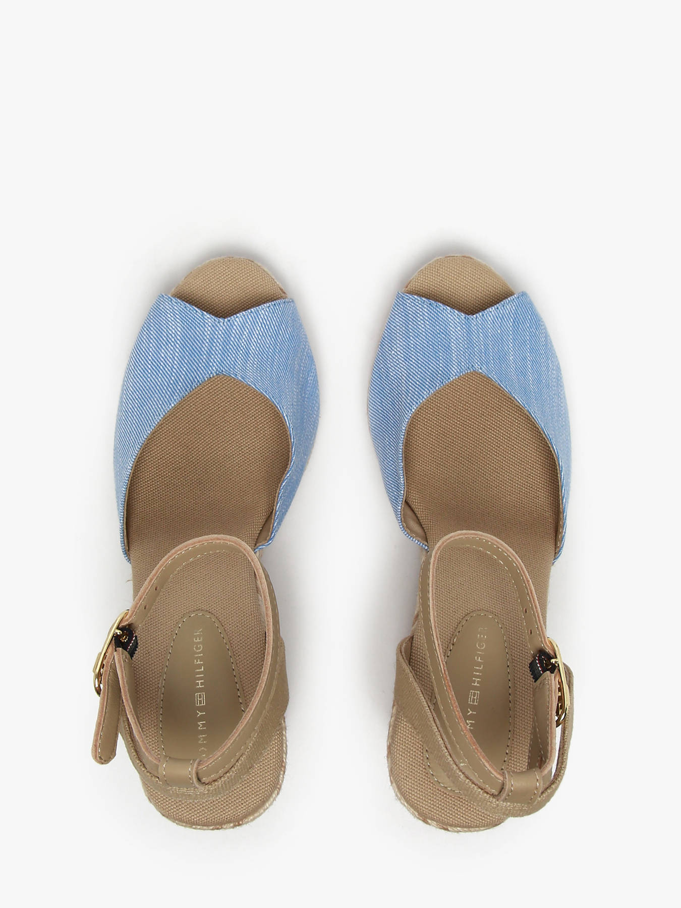 Ces sandales espadrilles compensées en chambray de TOMMY HILFIGER sont idéales pour les journées ensoleillées. Conçues avec une tige en chambray de coton, elles offrent une texture légère et respirante pour un confort optimal. Le talon compensé assure une silhouette élancée tout en offrant une stabilité et un soutien parfaits. La semelle intermédiaire recouverte de jute et la semelle extérieure en caoutchouc thermoplastique apportent une touche naturelle et une adhérence fiable. La bride à la cheville, avec sa fermeture à boucle et la boucle plate en forme de monogramme TH, ajoute une touche de raffinement. Disponibles dans le coloris blue spell, ces sandales espadrilles se marient facilement avec vos tenues estivales tout en affirmant un style moderne et emblématique grâce au branding TOMMY HILFIGER.